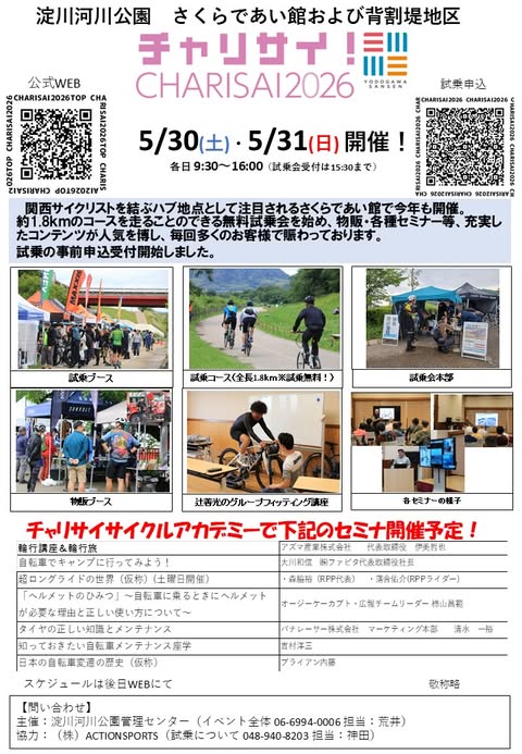 ★ 5月30日(土)、31日(日) 背割堤のチャリサイ2026 試乗会