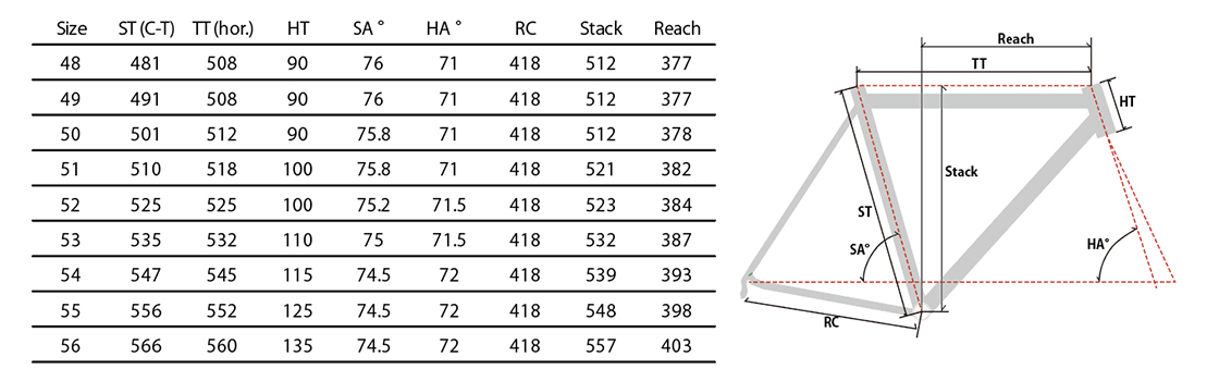 Weight: Frame 1.5kg (size 55), Fork 0.6kg